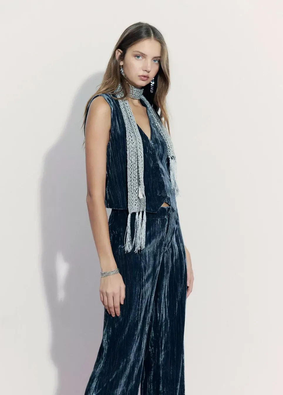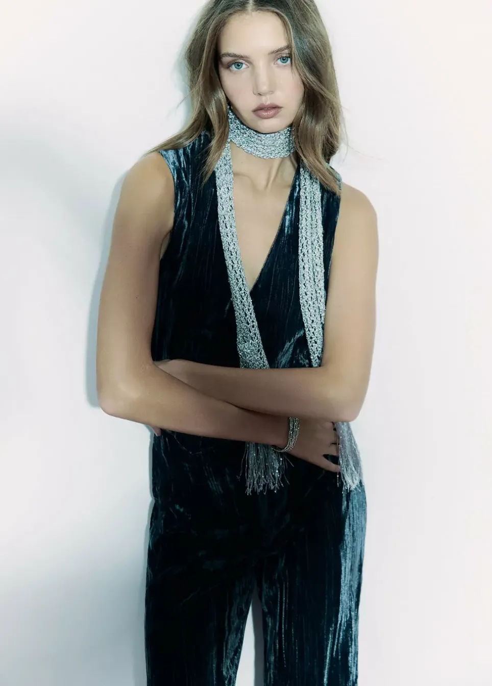 Bufanda Estrecha Calada De Lentejuelas.Composicion: