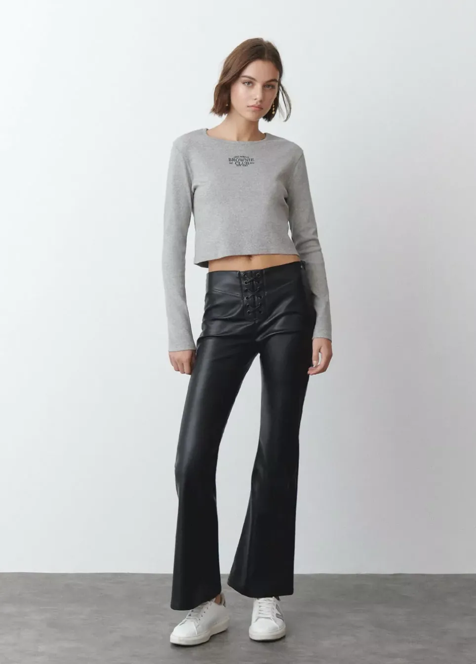 Camiseta Cropped De Manga Larga, Cuello Redondo Y Mensaje En El Frontal.Composicion: