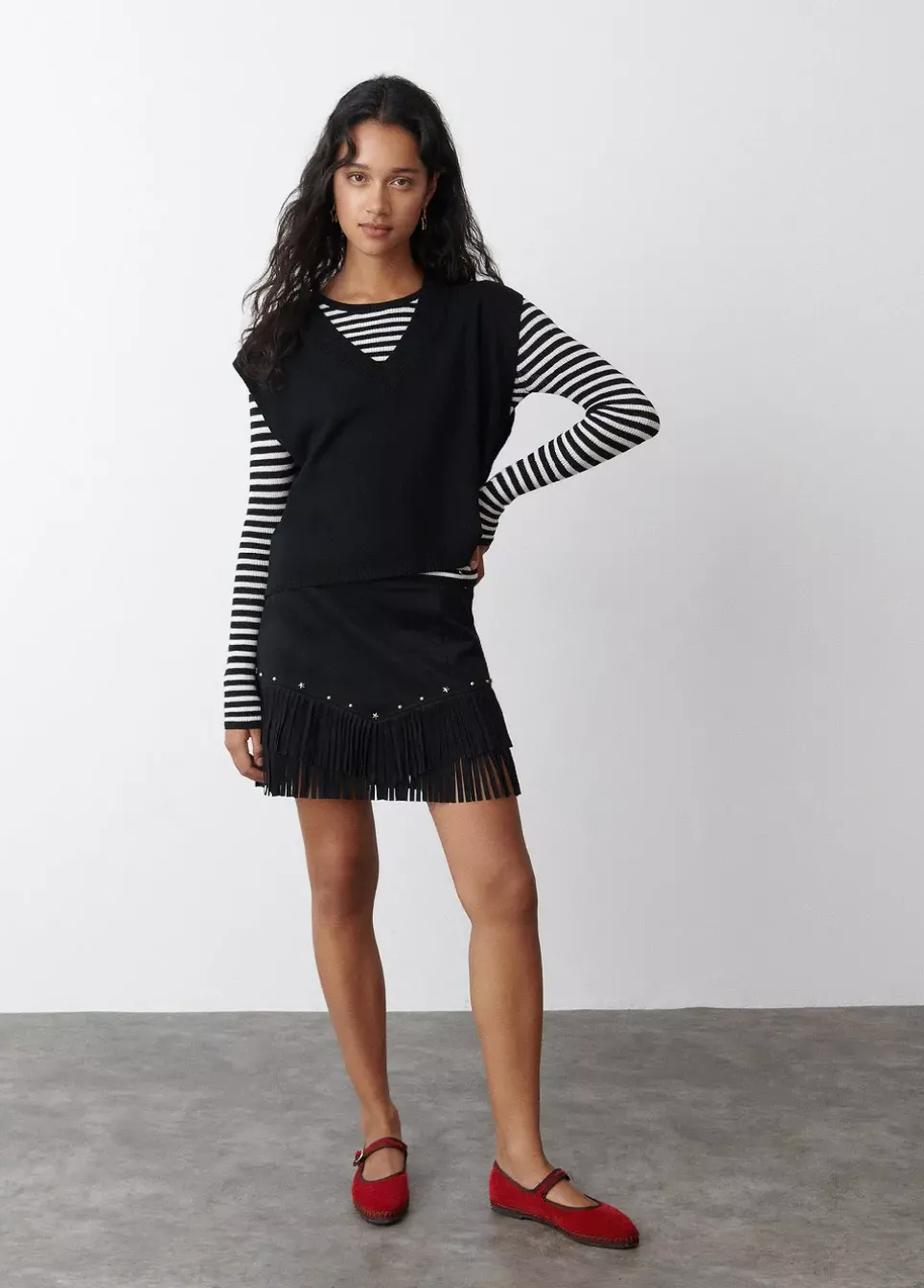 Chaleco De Punto Fino Sin Mangas Y Cuello De Pico.Composicion: