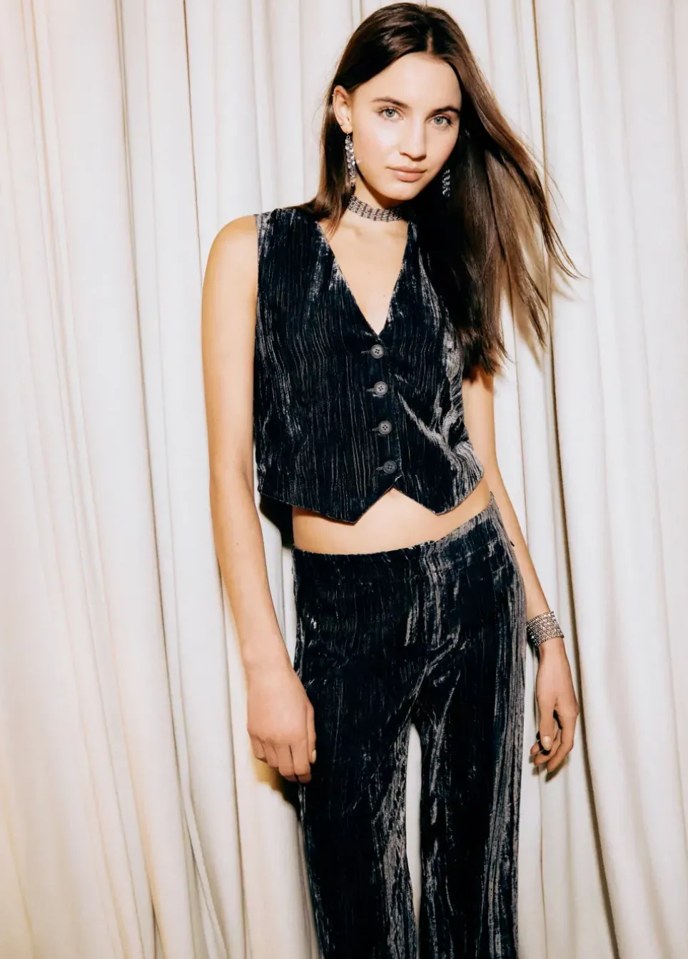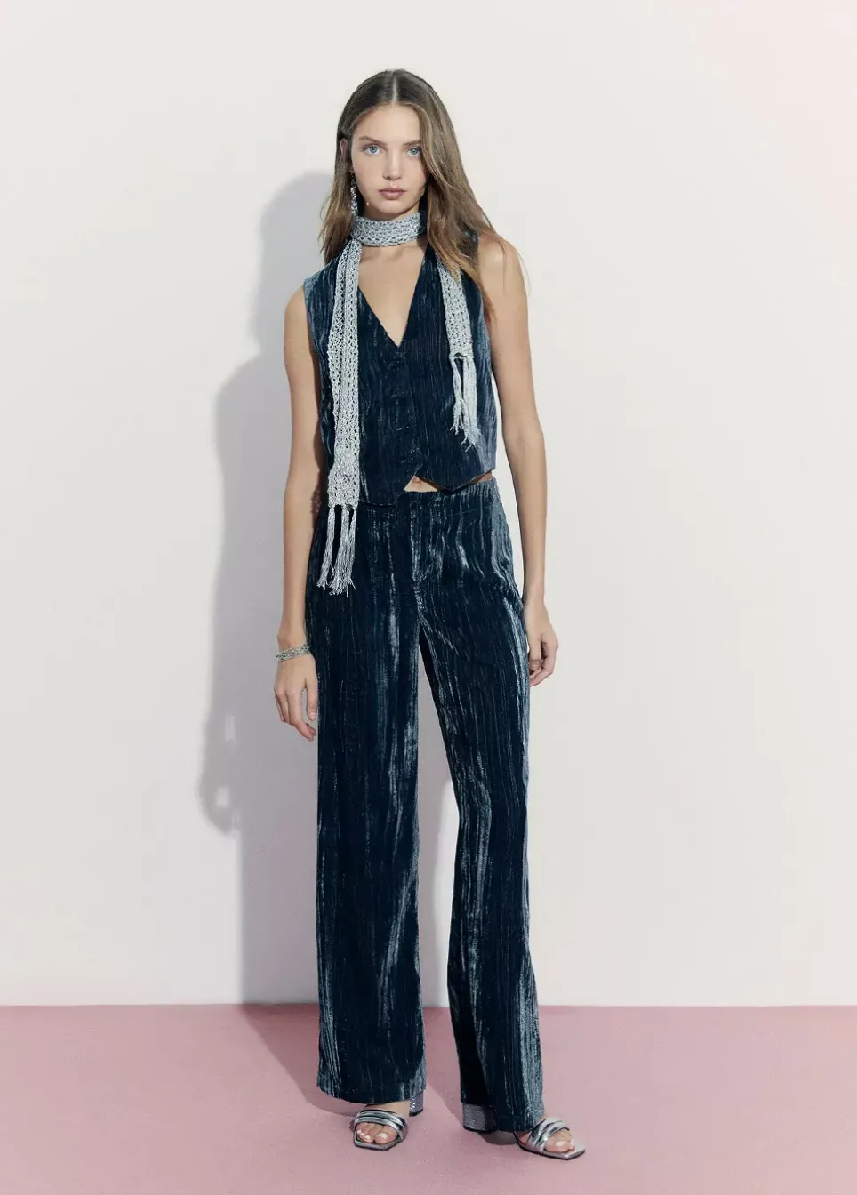 Chaleco De Vestir De Terciopelo Sin Mangas, Cuello De Pico Y Botones En El Frontal.Composicion: