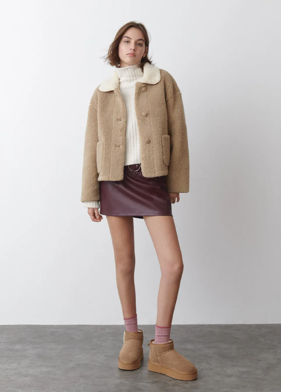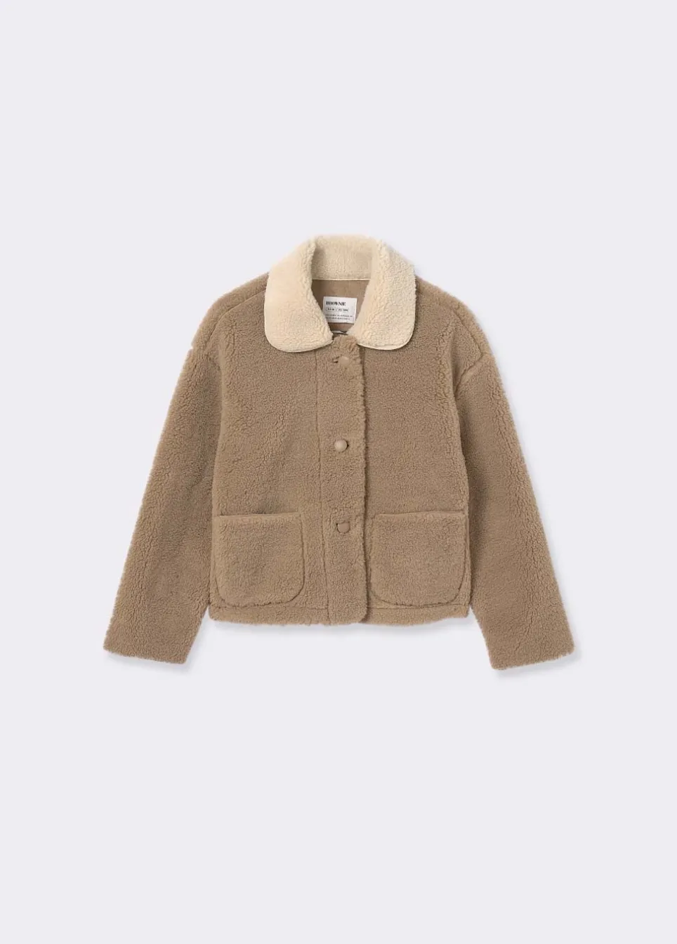Abrigo Corto De Borreguito De Manga Larga, Cuello Con Solapas A Contraste, Bolsillos Frontales Y Cierre Mediante Botones.Composicion: