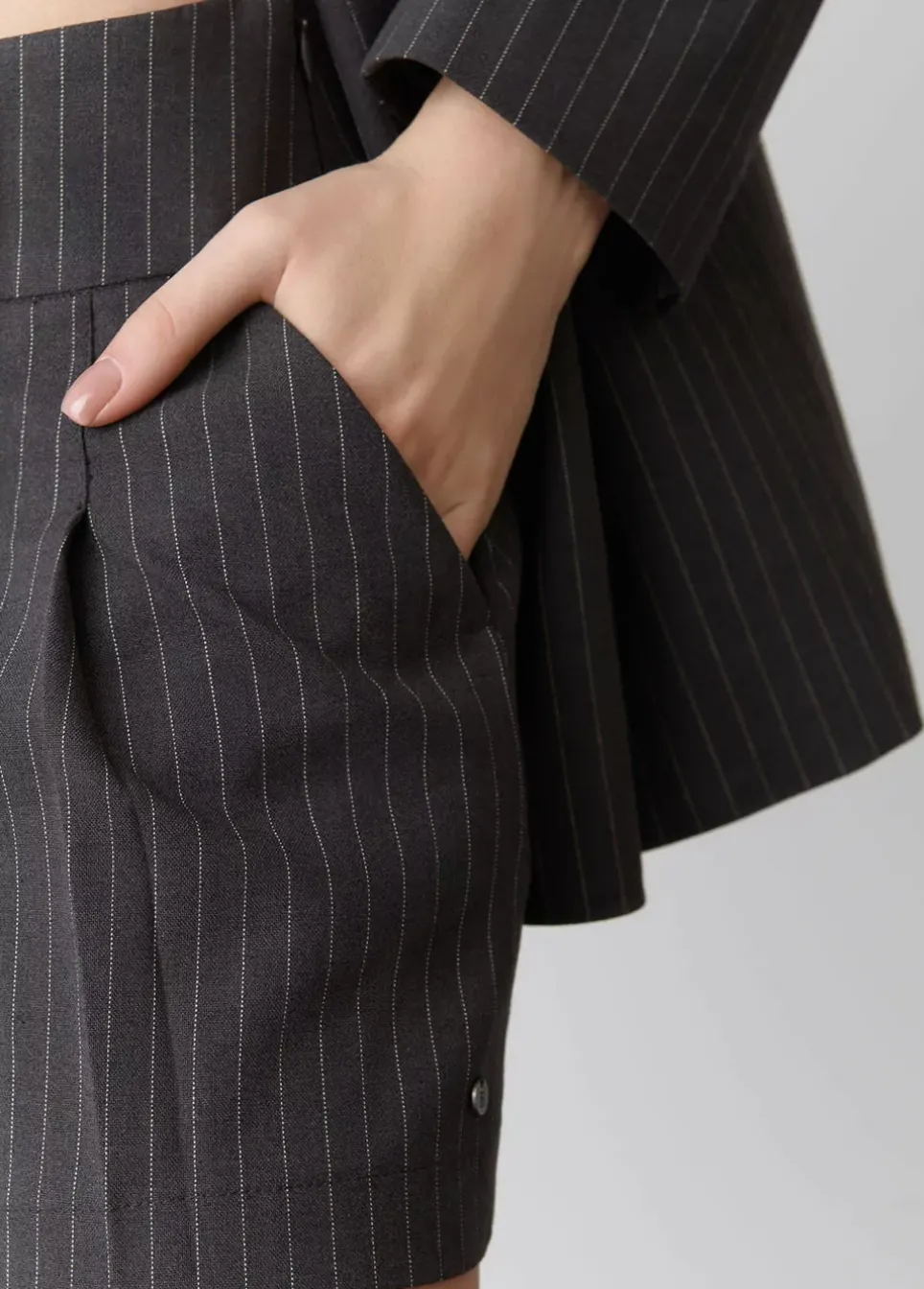Falda Corta De Tablas De Raya Diplomatica Y Bolsillos.Composicion: