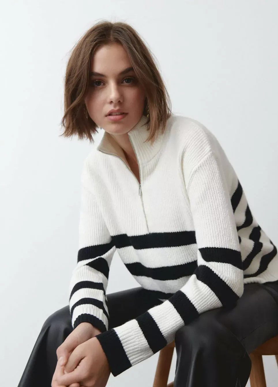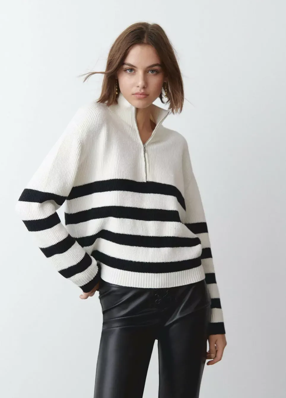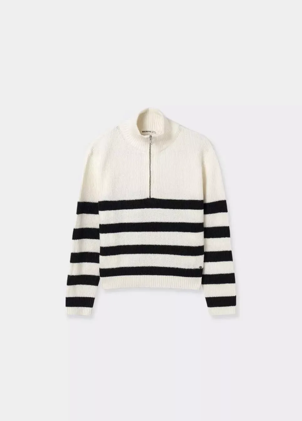 Jersey De Rayas De Manga Larga Y Cuello Alto Con Cremallera.Composicion: