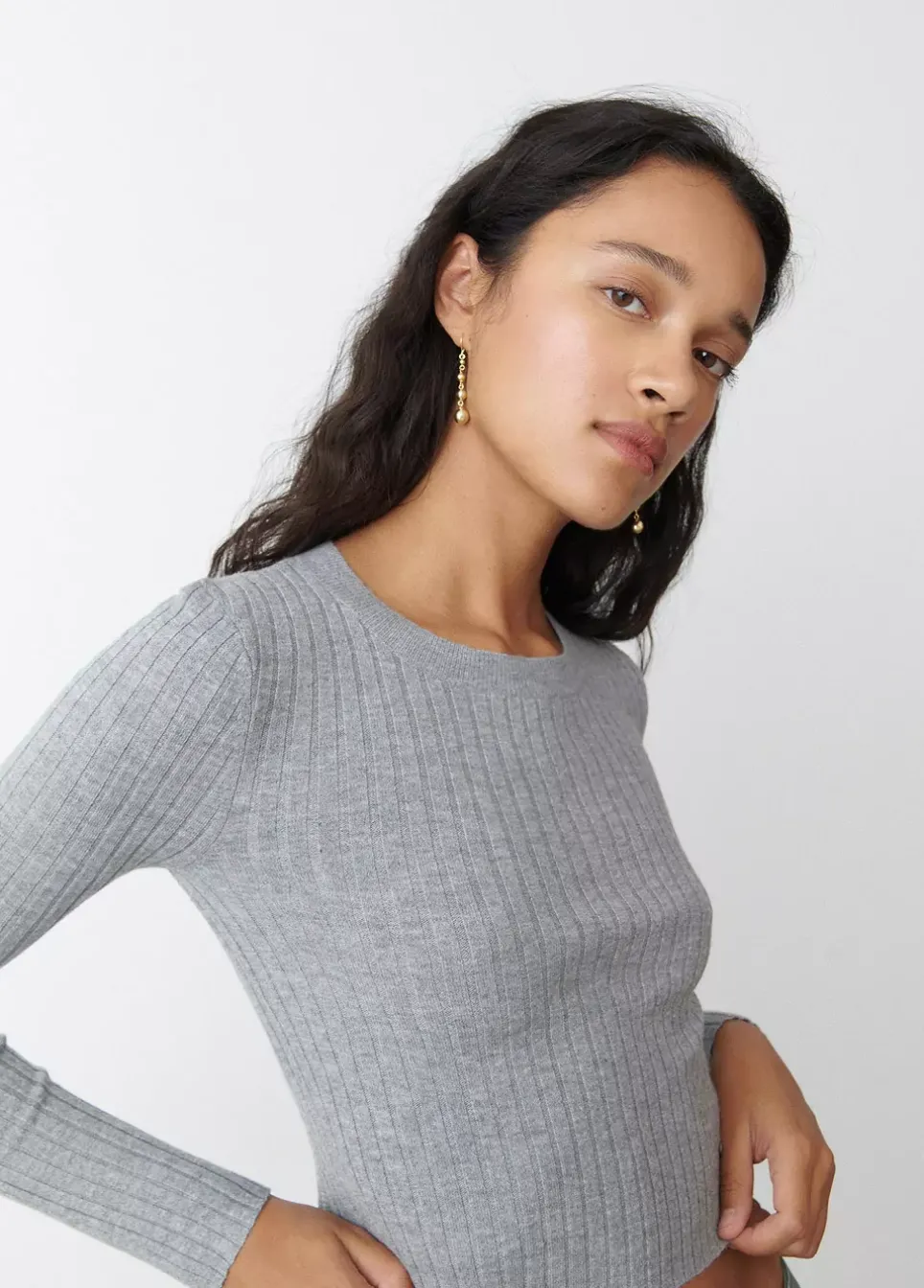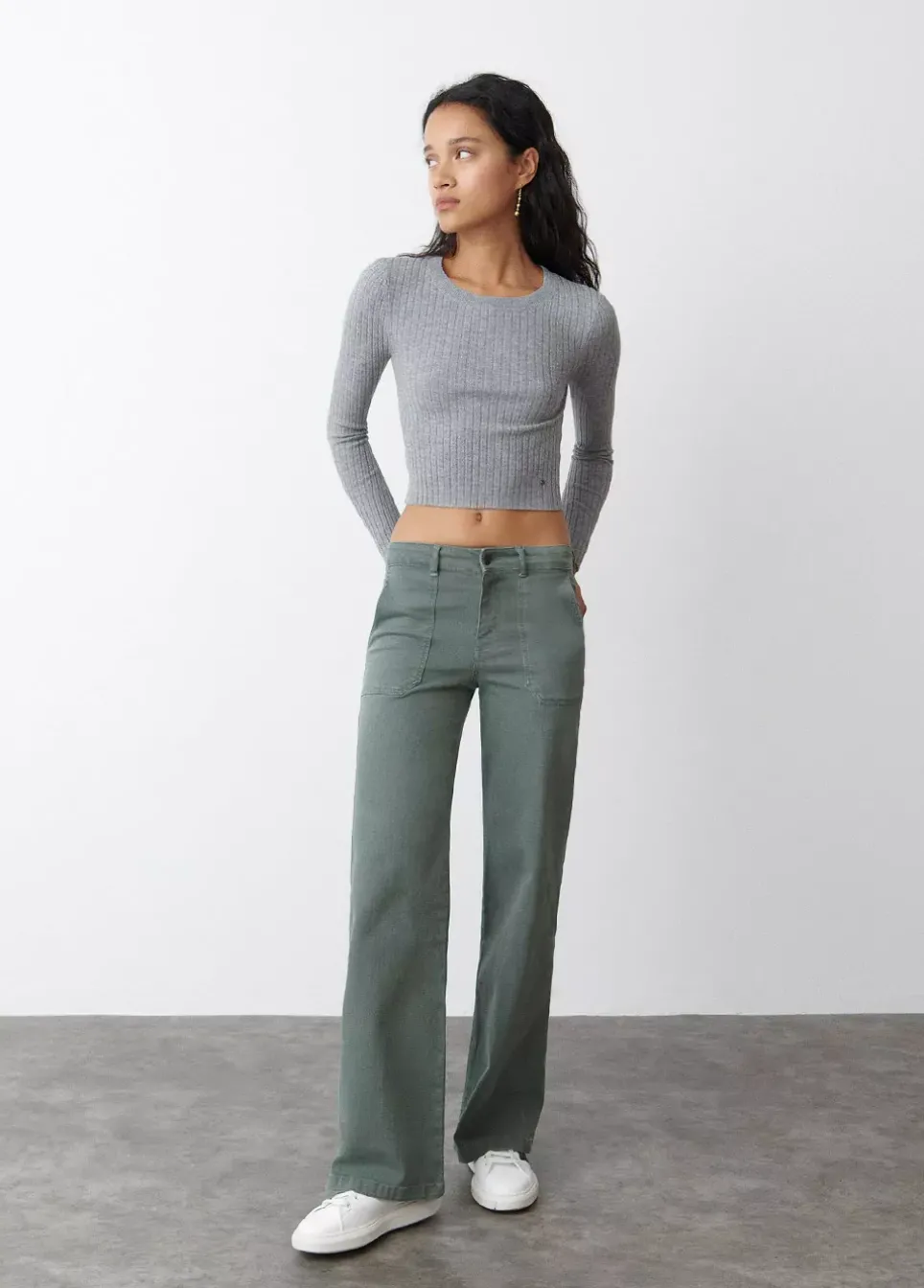 Jersey Cropped Basico De Canale De Manga Larga Y Cuello Redondo.Composicion: