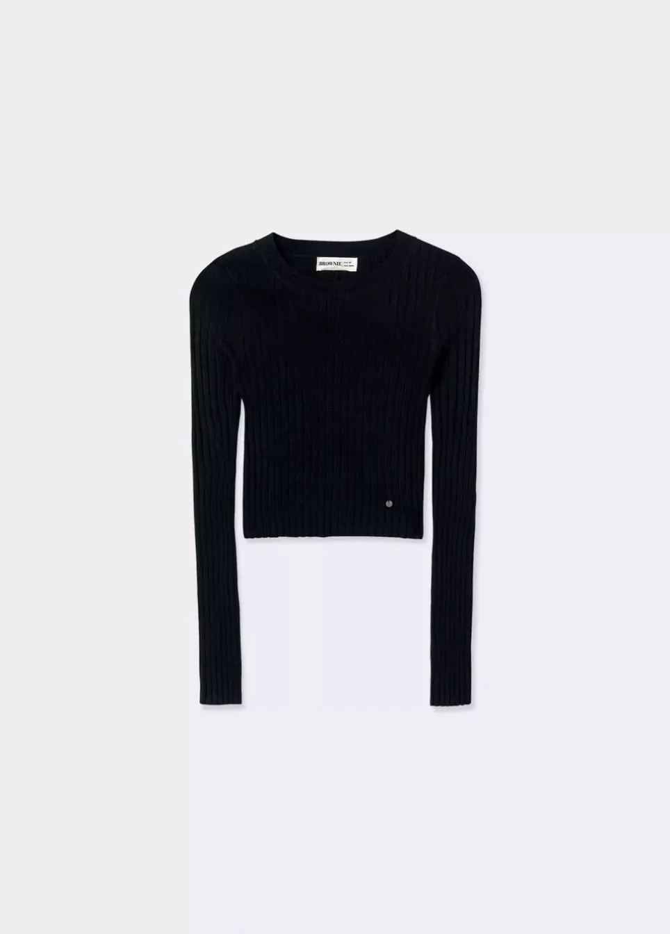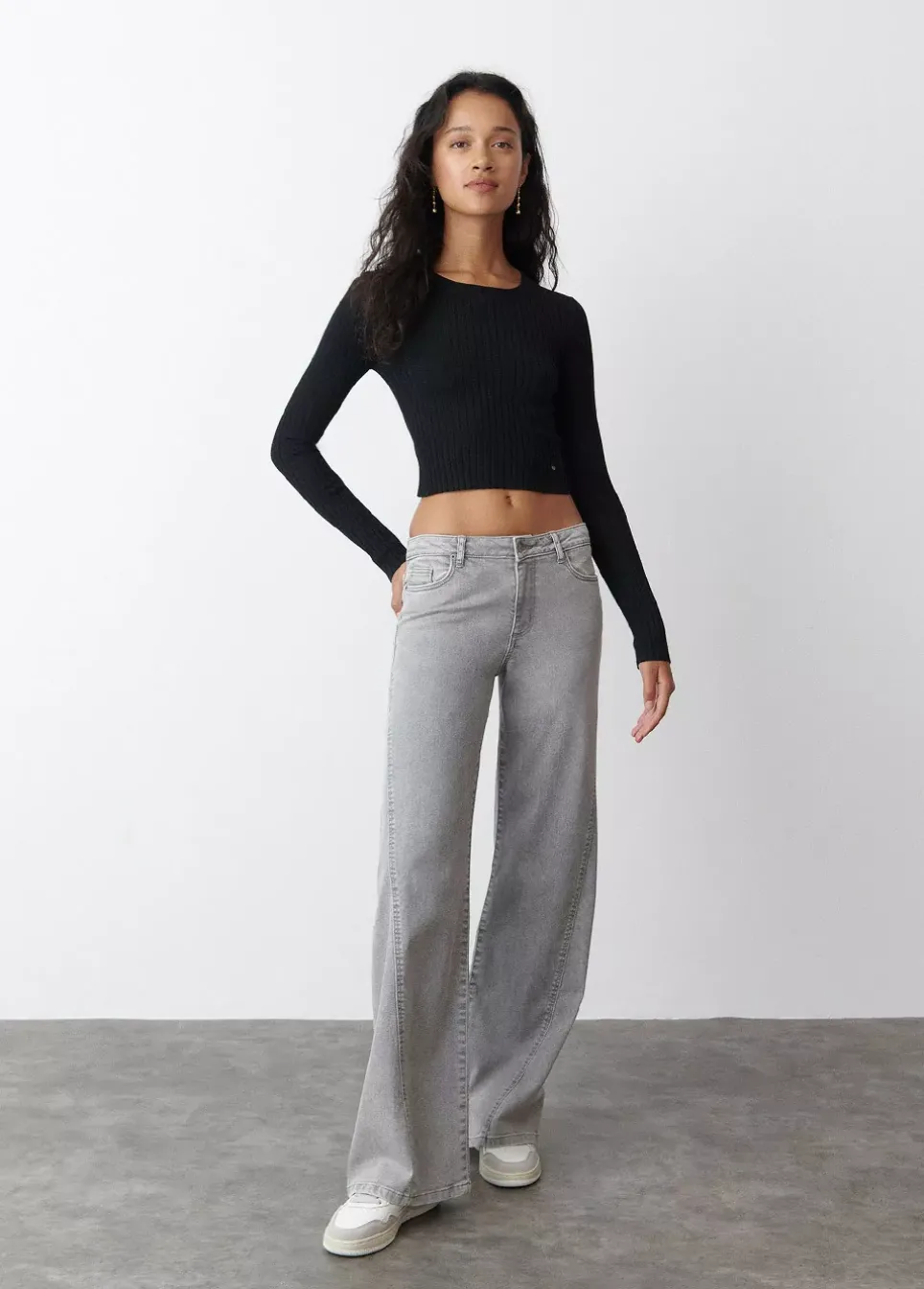 Jersey Cropped Basico De Canale De Manga Larga Y Cuello Redondo.Composicion:
