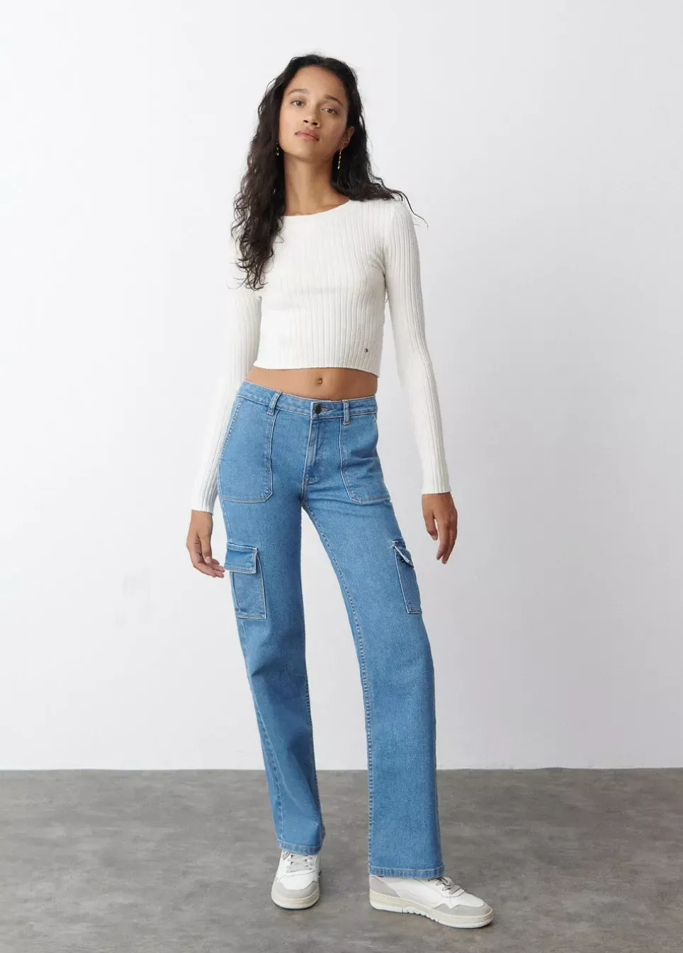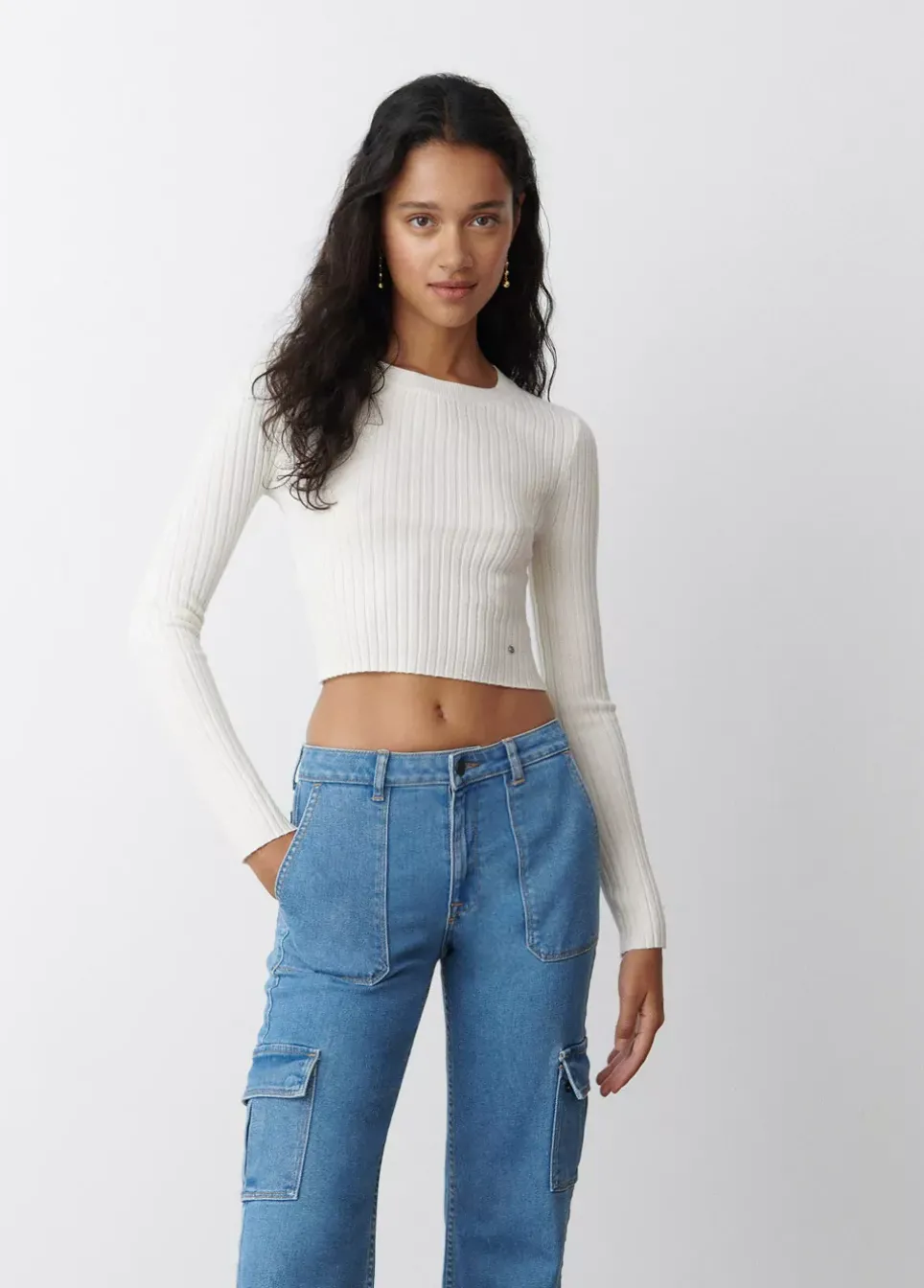 Jersey Cropped Basico De Canale De Manga Larga Y Cuello Redondo.Composicion: