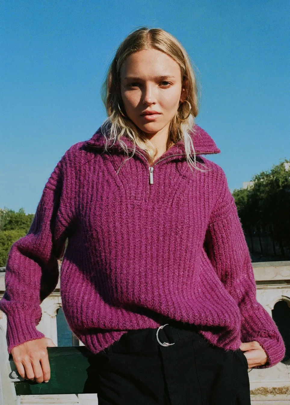 Jersey De Punto Grueso De Manga Larga Con Cremallera En El Cuello.Composicion: