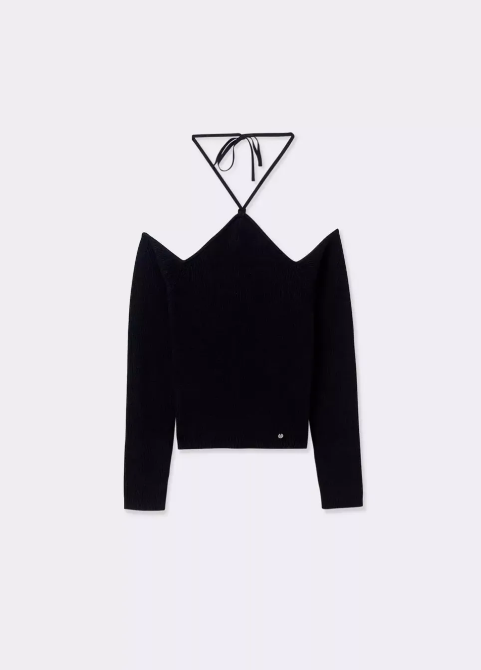 Jersey De Manga Larga, Escote De Banera Y Cuello Tipo Halter Con Tiras Atadas Al Cuello.Composicion: