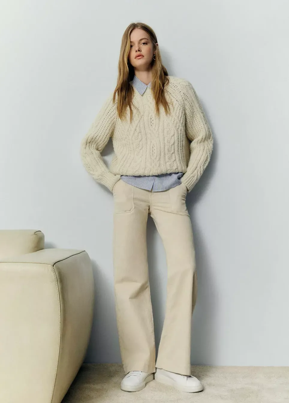 Jersey De Punto Trenzado De Manga Larga Y Cuello Redondo.Composicion: