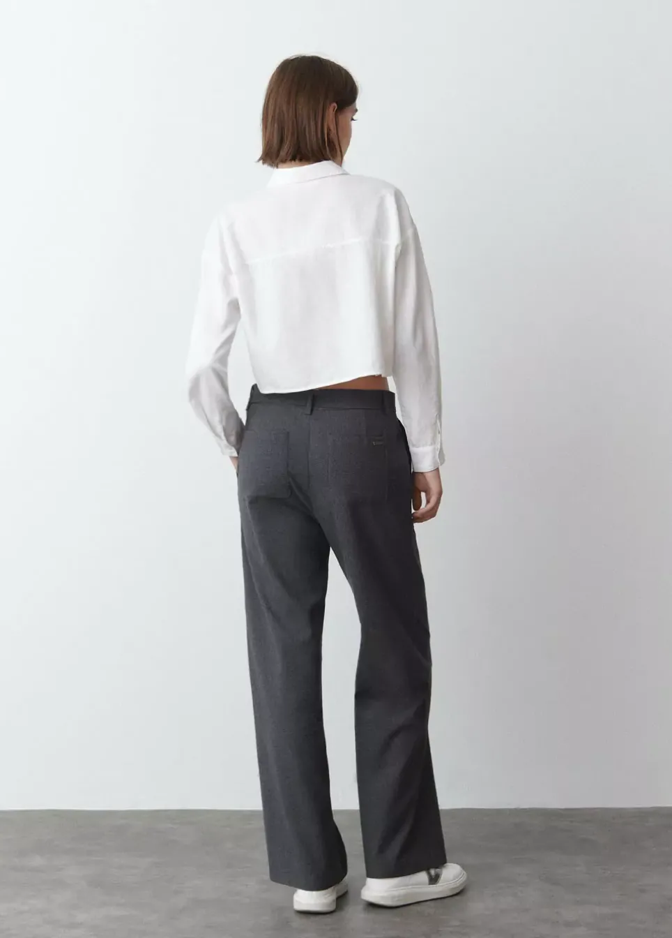 Pantalon Recto Liso De Tiro Medio Con Detalle De Cinturon Y Dos Maxi Bolsillos En El Frontal.Composicion: