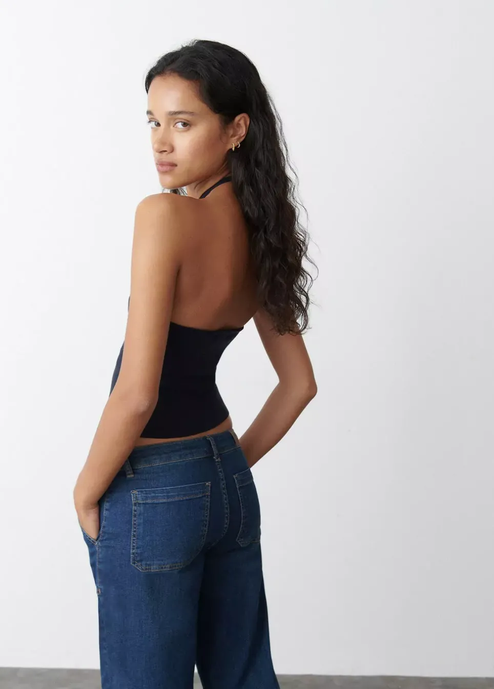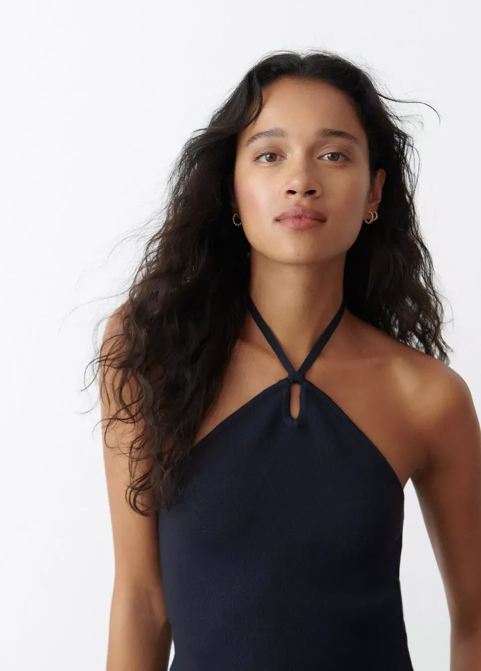 Top De Punto De Hilo Metalizado Sin Mangas, Cuello Halter Y Pequena Apertura En El Escote.Composicion: