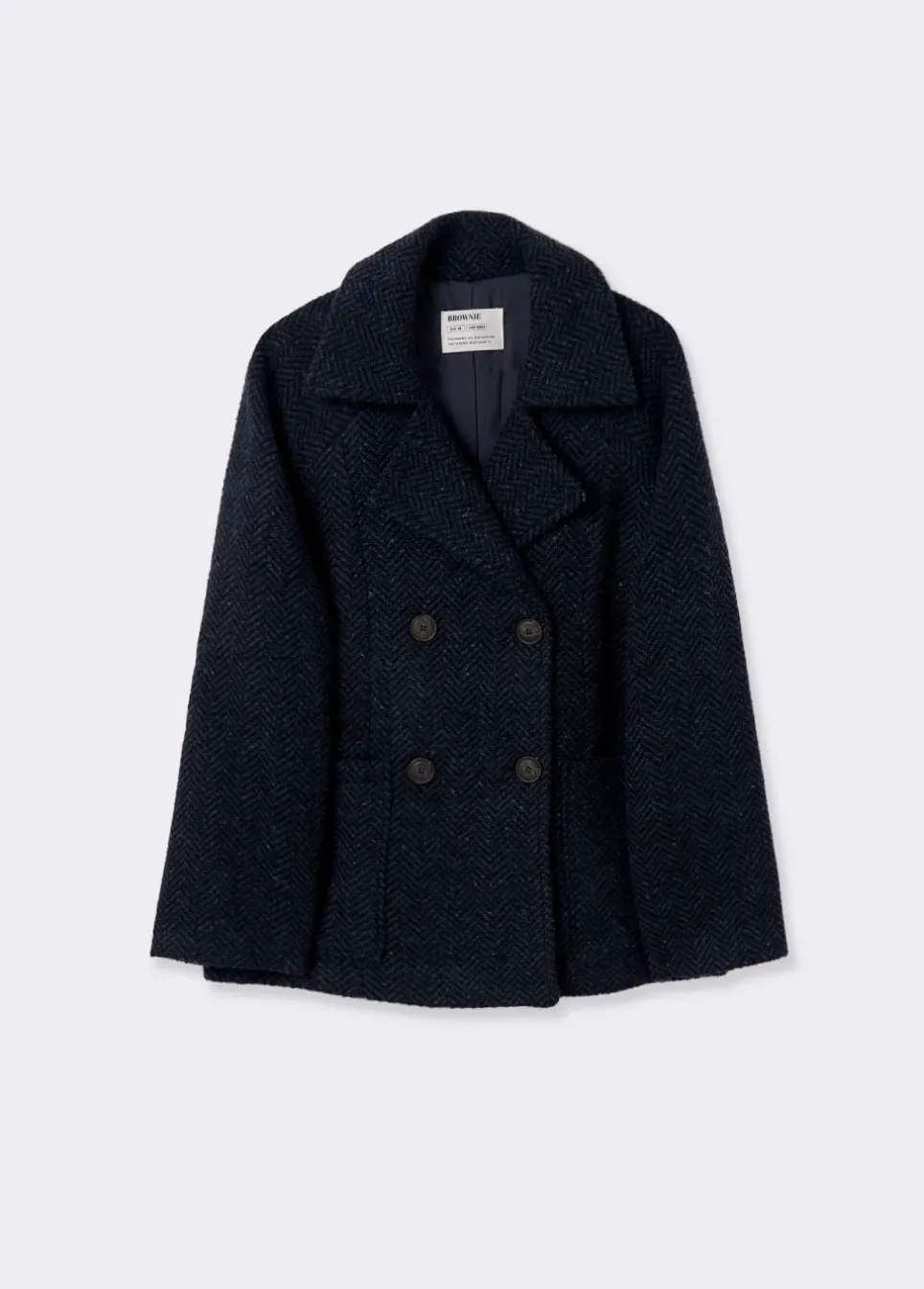 Abrigo De Pano Corto Cruzado Jaspeado De Manga Larga, Cuello Con Solapas, Dos Maxi Bolsillos Y Cierre Mediante Botones En El Frontal.Composicion: