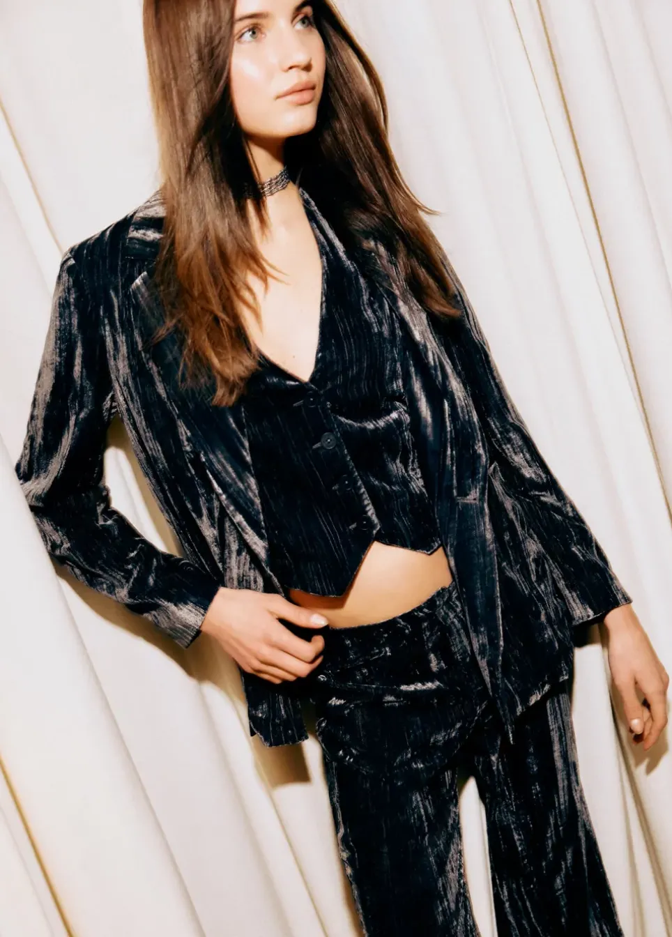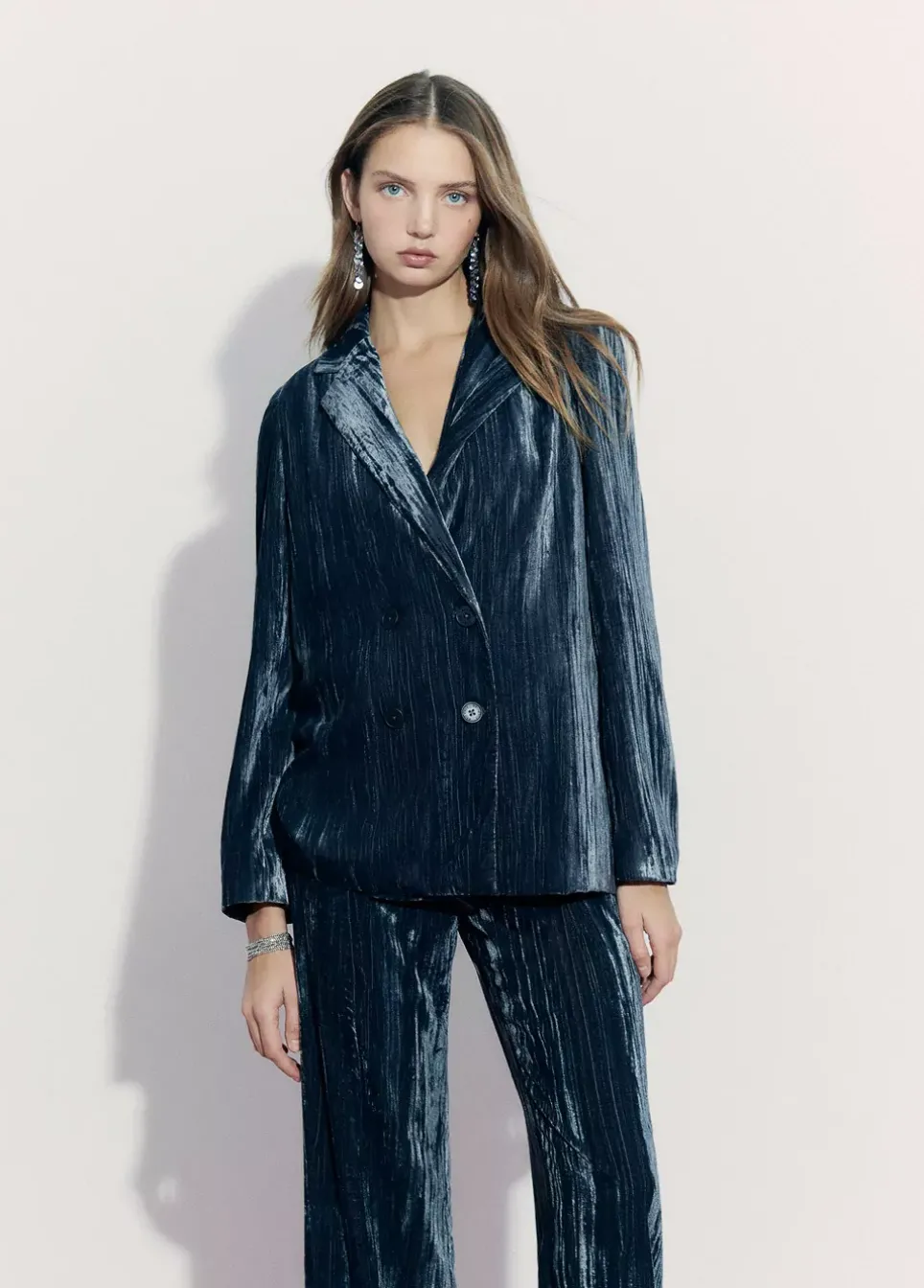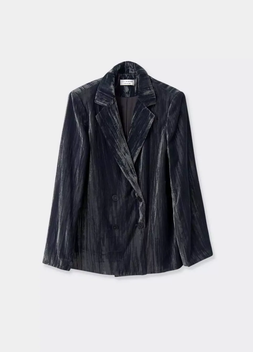 Americana De Terciopelo Cruzada, Cuello Con Solapas Y Cierre Mediante Botones En El Frontal.Composicion: