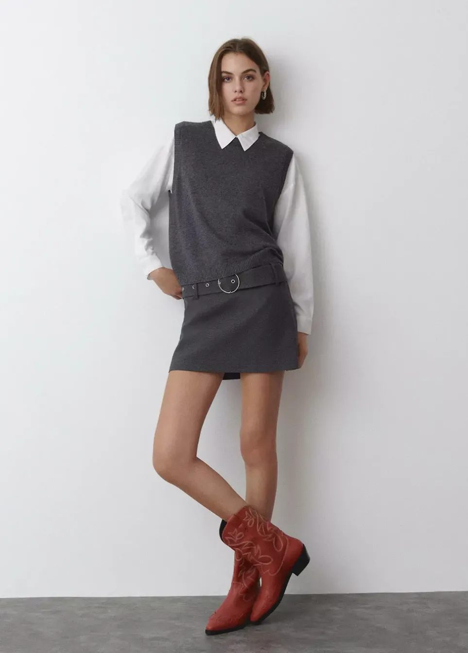 Bota Cowboy Pespuntes Contraste Piel