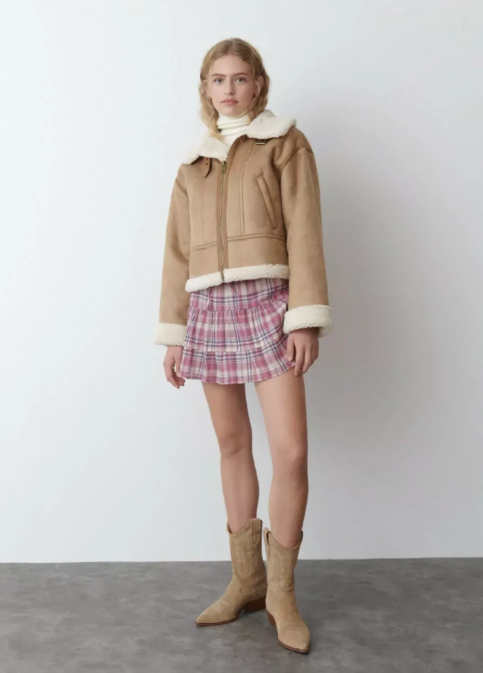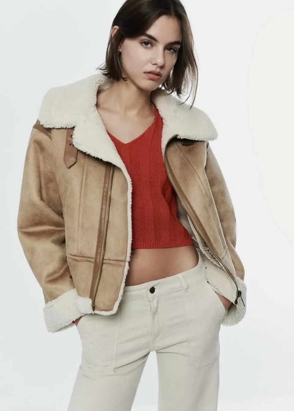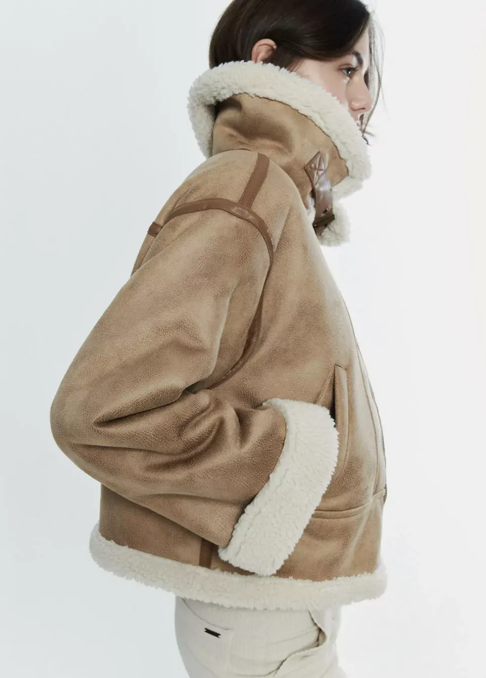 Cazadora Doble Faz Corta Efecto Piel De Manga Larga, Cuello Con Solapa De Borrego, Bolsillos Delanteros Y Cierre Mediante Cremallera.Composicion: