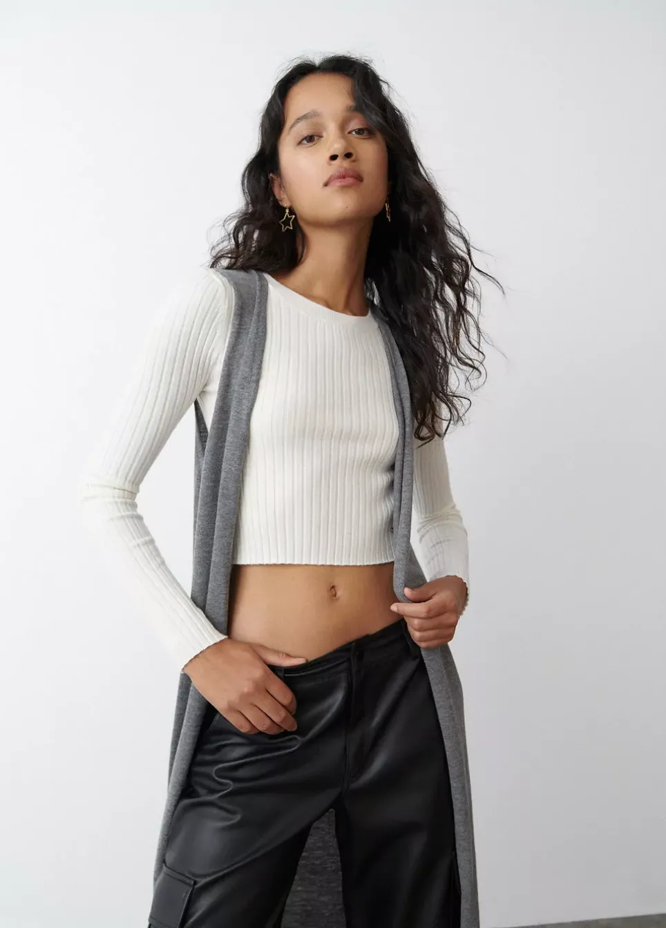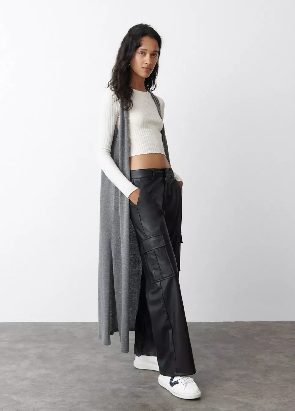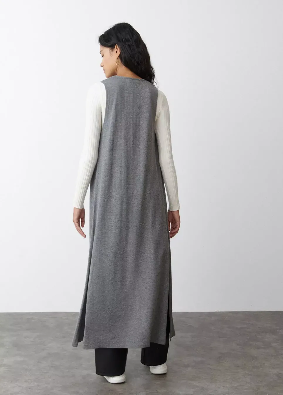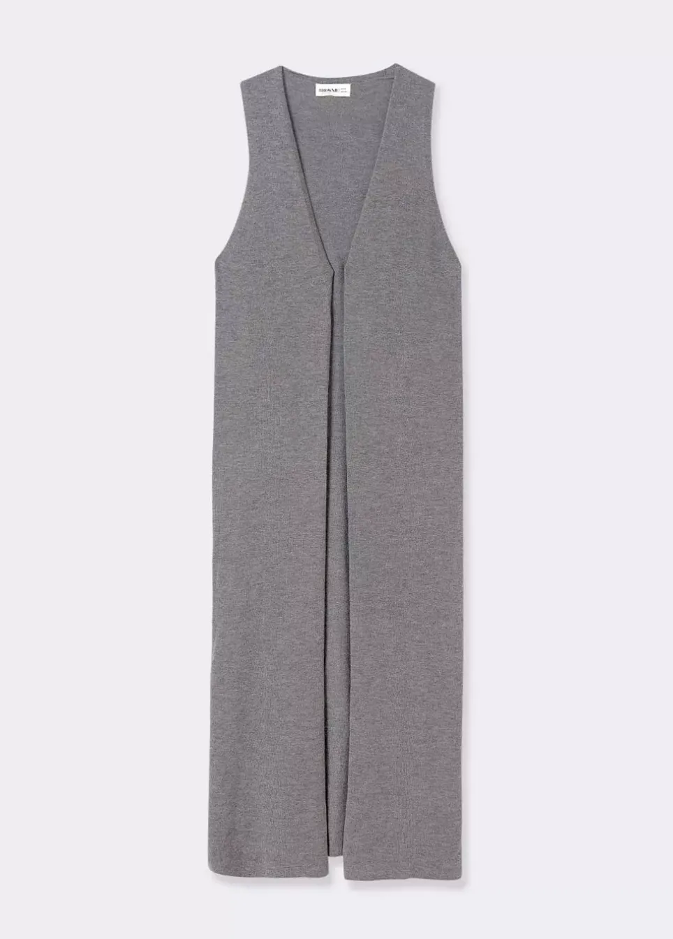 Chaleco De Punto Liso Largo Sin Mangas Y Cuello De Pico.Composicion: