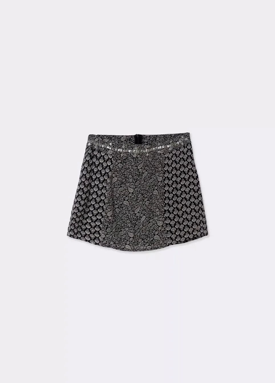 Falda Corta Con Doble Estampado Y Pedreria En La Parte Superior.Composicion: