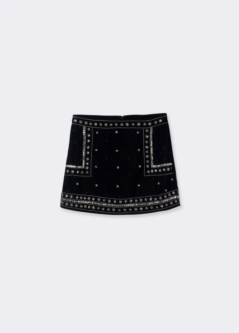 Falda Corta De Terciopelo Con Detalle De Pedreria. Composicion: