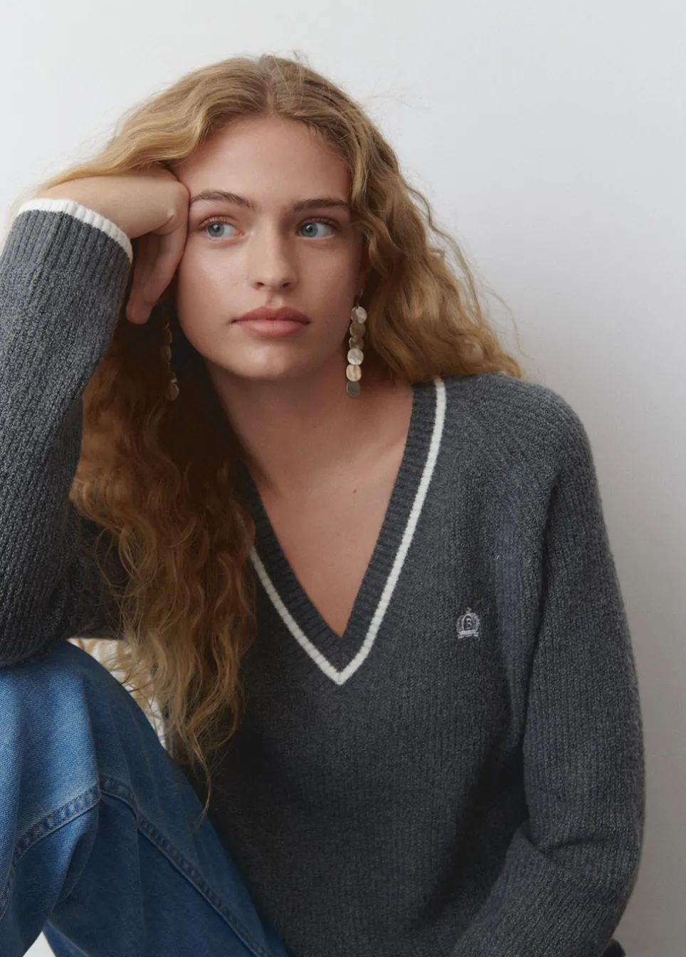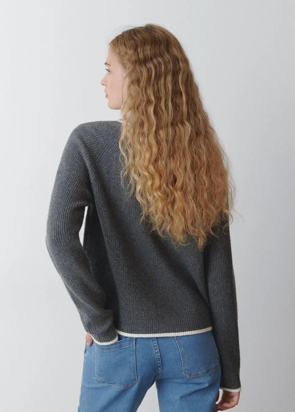 Jersey De Manga Larga, Cuello De Pico A Contraste Y Detalle De Bordado.Composicion:
