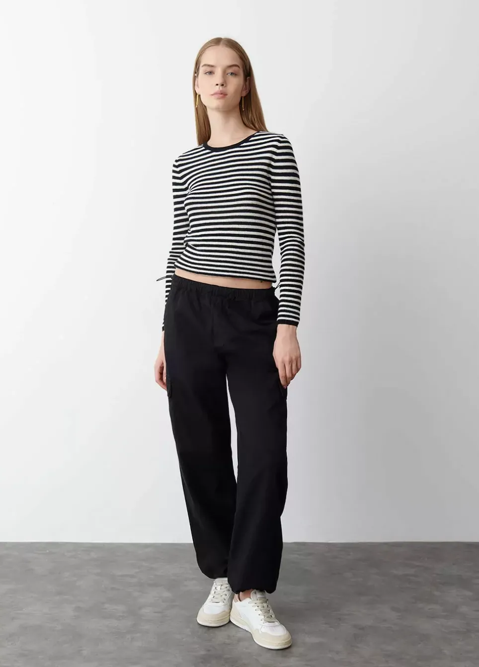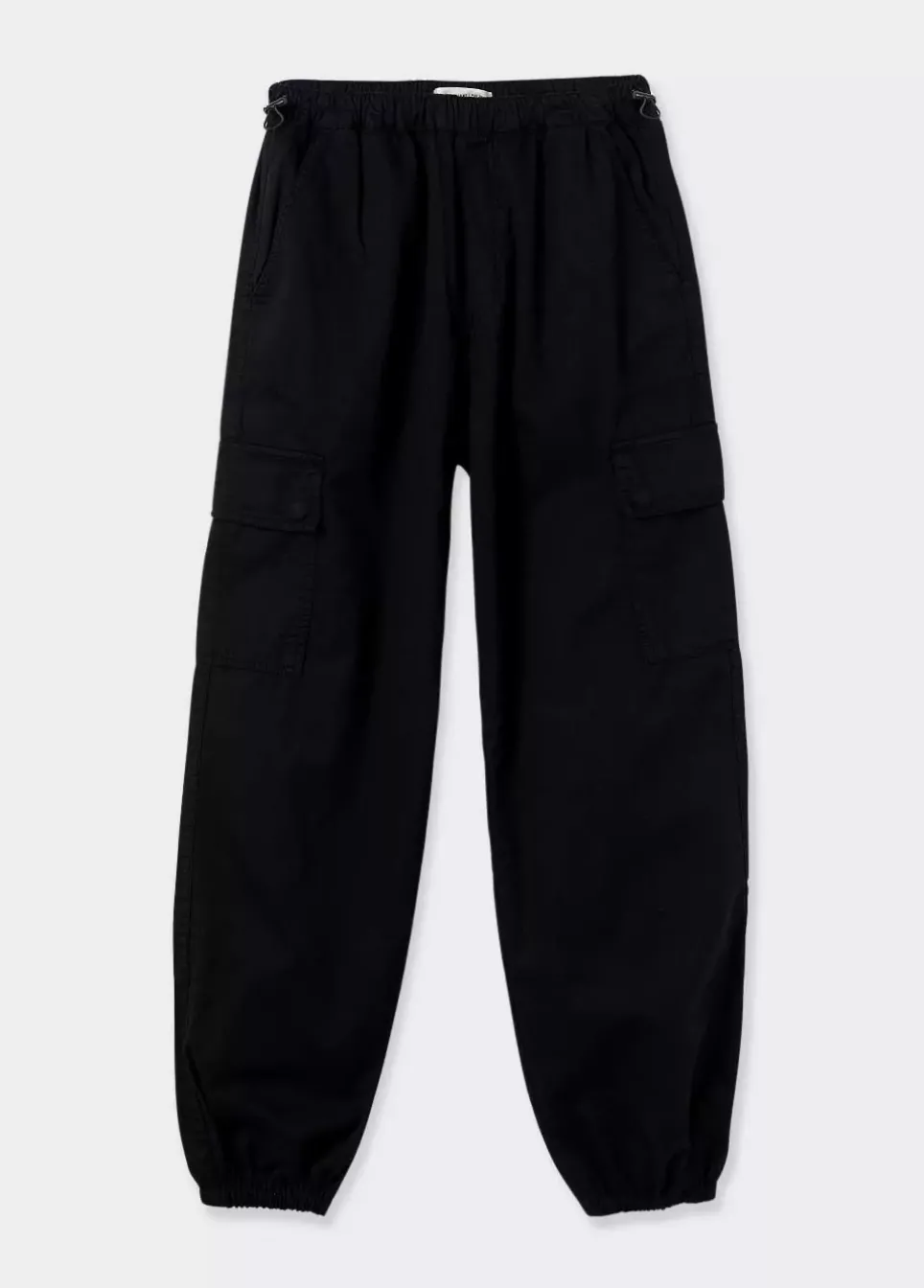 Pantalon De Tiro Medio Parachute Largo Fluido, Tipo Cargo Con Bolsillos Y Cierre De Goma Ajustable Tanto En La Cintura Como En Los Tobillos.