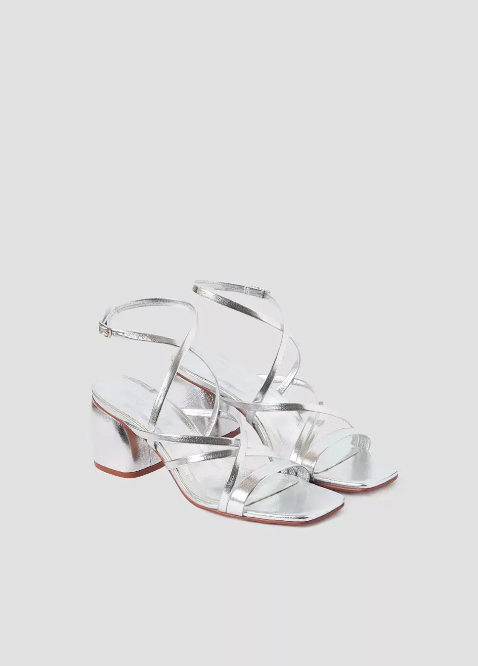Sandalia De Tacon Con Tiras Entrelazadas En Color Plata. Cierre Mediante Hebilla En El Tobillo.Alto De Tacon: 7 Cmcomposicion: