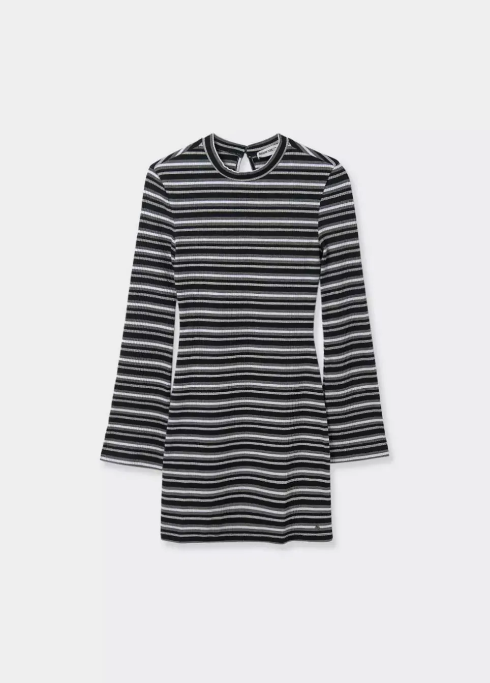 Vestido Corto De Rayas De Lurex, Manga Larga, Cuello Redondo Y Detalle De Apertura En El Bajo.Composicion: